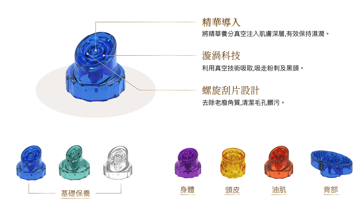 Vortex-Technology® 技術技術是利用負壓吸取角質髒污的同時,藉由渦漩注入技術同步將營養成份注入肌膚。